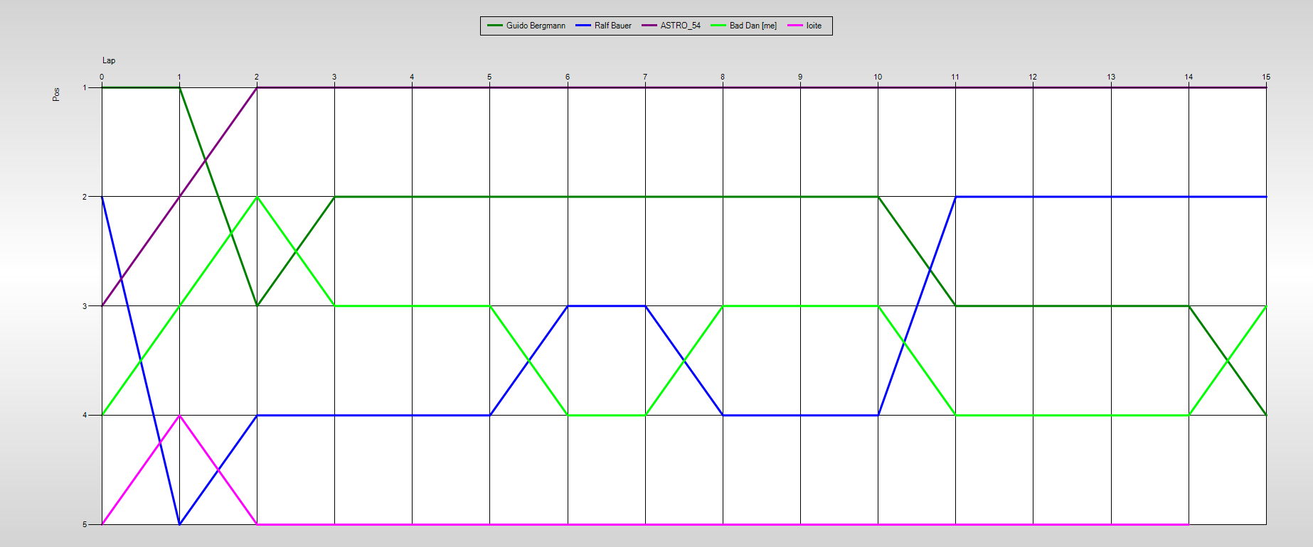 | 3 | Bad Dan [me] | Ginetta G55 GT4 - Jeschke #87 | Ginetta G55 GT4 | - | 15 | 00:29:19.327 | + 52,113 | 01:53.422 | 4 | 01:54.433 | - | 0 | 4 | - | - |